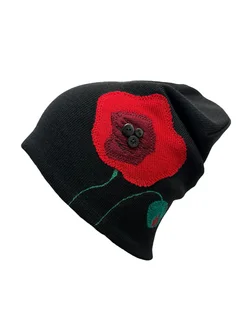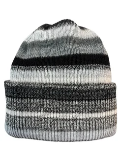 Зимняя шапка бини с отворотом (ч б полосатая)