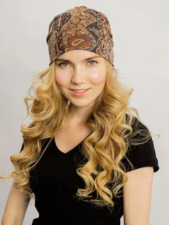 Шапка бини с принтом Огурцы пейсли с темно-синим
