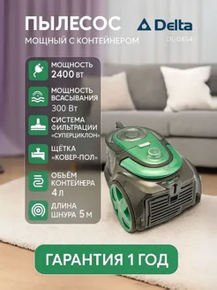 Пылесос для дома мощный с контейнером DL-0854 зеленый-черный
