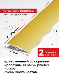 Порог на пол разноуровневый алюминиевый 41х900мм, 2 шт
