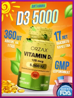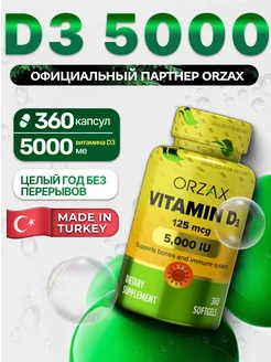 Орзакс Витамин Д3 5000,360кап Турция, vitamin d3 5000