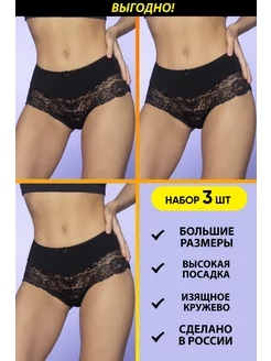 Трусы женские хлопок слипы высокие кружевные набор 3 шт