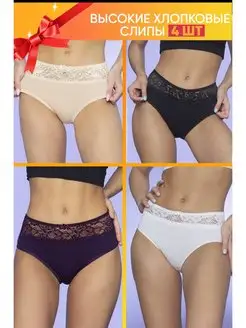 Трусы женские кружевные высокие слипы хлопок набор 4 шт