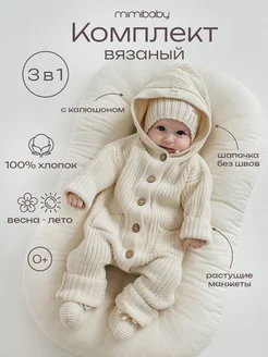 Вязаный комплект для новорожденных на выписку с капюшоном