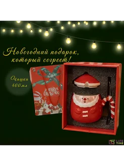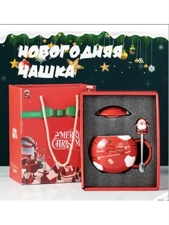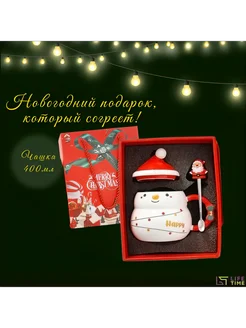 Кружка Новогодняя с ложкой крышкой в упаковке