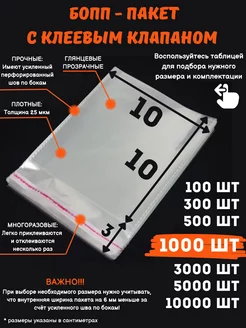 Упаковочные БОПП пакеты с клеевым клапаном 10х10 см 1000 шт