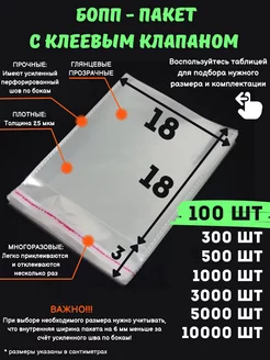 Упаковочные Бопп пакеты с клеевым клапаном 18 х 18 см 100 шт