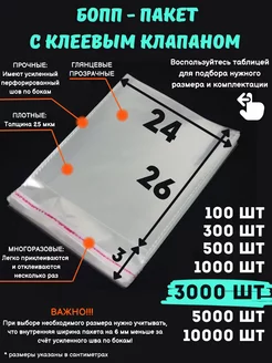 Упаковочные Бопп пакеты с клеевым клапаном 24 х 26см 3000 шт