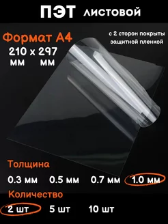 Пластик прозрачный листовой Пэт, лист пластика А4 1 мм, 2 шт