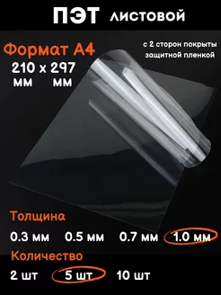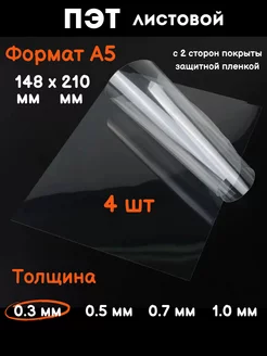 Пластик прозрачный листовой Пэт, лист пластика А4 1 мм, 5 шт