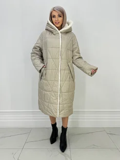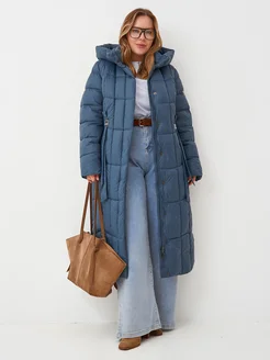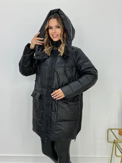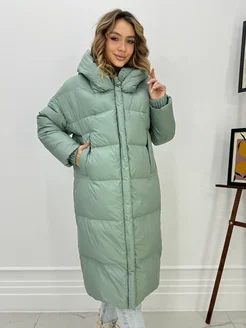 Пуховик зимний длинное стеганный капюшоном больших размеров