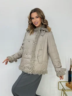 Зимний пуховик верблюжья шерсть мех