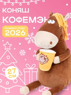 Мягкая игрушка Символ года 2026 Конь Кофемэн, 27 см