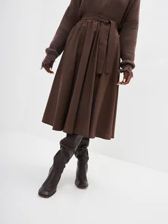 Юбка миди коричневая в складку с подкладом хлопок