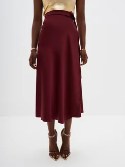 Юбка миди атласная на запах с завязками