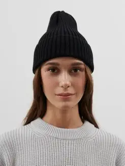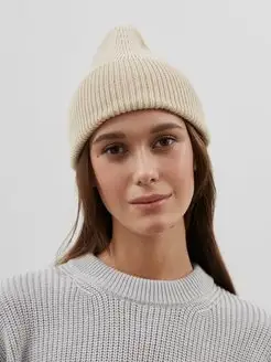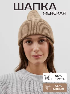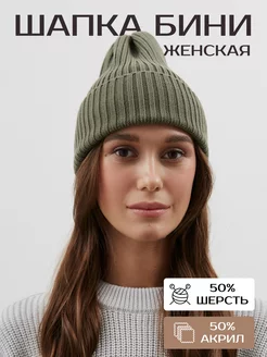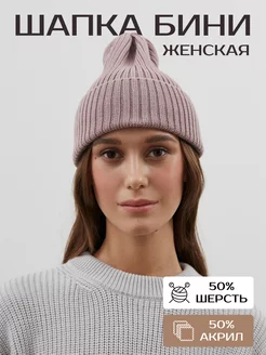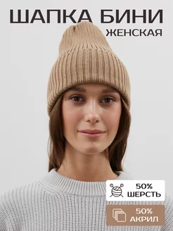 Шапка женская бини на зиму вязаная шерсть мериноса