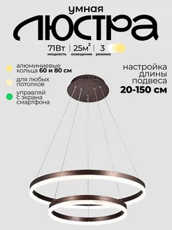 Люстра кольцевая LED 2 кольца 60 80 см