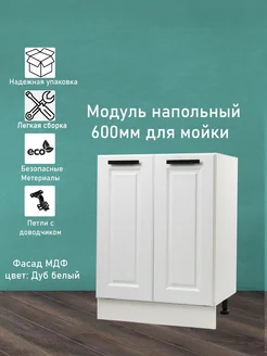 Кухонный модуль напольный для мойки, Амелия, Дуб белый,60 см