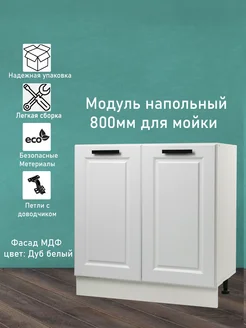 Кухонный модуль напольный для мойки, Амелия, Дуб белый,80 см