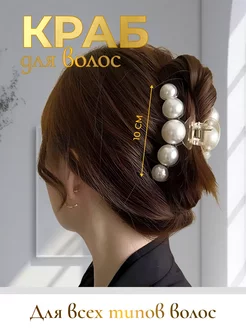 Крабик для волос большой с жемчугом