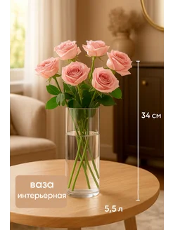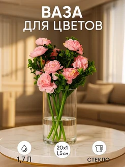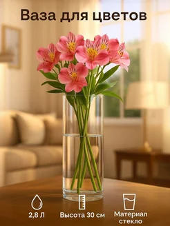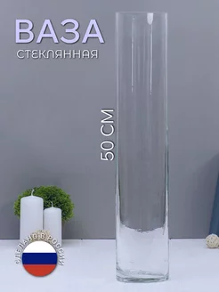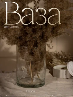 Ваза цилиндр для цветов и сухоцветов стеклянная