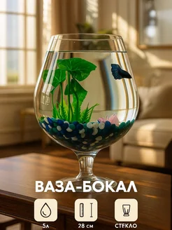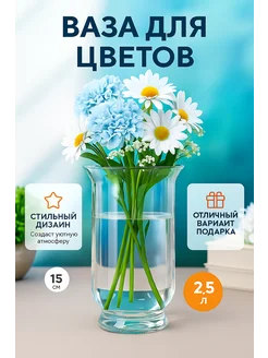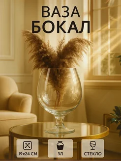 Прозрачная стеклянная ваза для цветов и сухоцветов