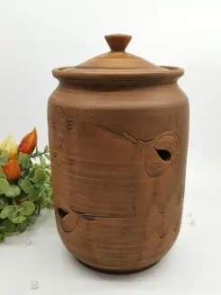 Банка керамическая с крышкой из глины для лука