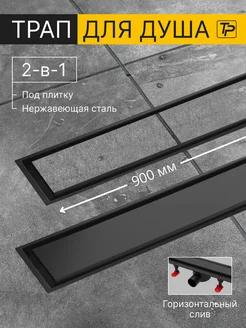 Трап для душа 900 под плитку сухой и гидрозатвор черный Г