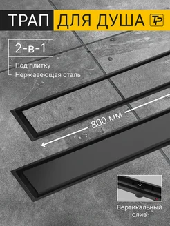 Трап для душа 800 под плитку сухой и гидрозатвор черный Г