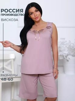 Костюм жeнский брюки с карманами больших размеров хлопок