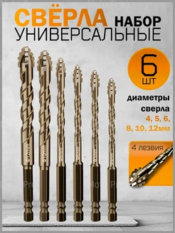 Набор сверл универсальный 4, 5, 6, 8, 10, 12 мм