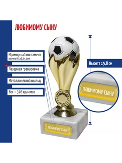 Кубок Футбольный мяч "Любимому сыну" на мраморном постаменте
