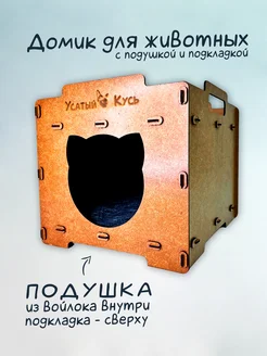 Домик для кошек и собак из дерева Куб хдф с подушкой