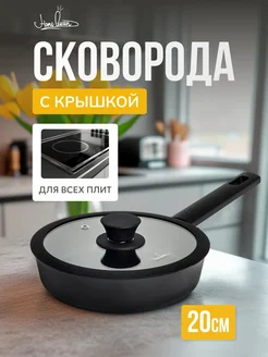 Сковорода с крышкой 20 см для всех плит, антипригарная