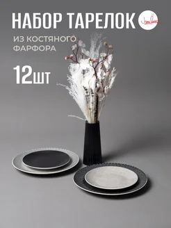 Набор тарелок 12 штук фарфор, обеденная и десертная