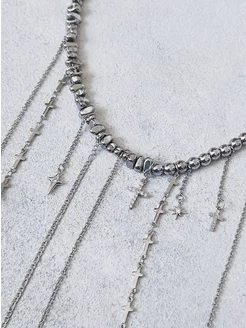 Свадебное колье на леске из жемчуга с кулоном капелька