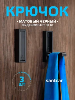 Крючок настенный складной, прямоуг, черный, 3 шт
