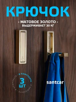 Крючок настенный складной, прямоуг, золото, 3 шт