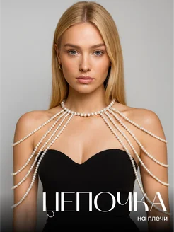 Бодичейн цепочка на тело и плечи с искусственным жемчугом