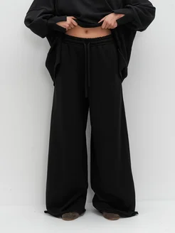 Брюки палаццо прямые на резинке из футера осенние широкие