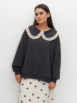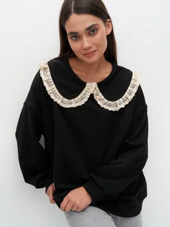 Свитшот оверсайз с воротником из футера с кружевом теплый