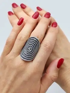 Кольцо серебро 925 широкое крупное геометрия, бохо