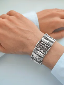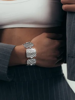 Браслет серебро 925 широкий крупный геометрия, бохо