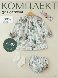 Платье для новорожденных с трусиками и повязкой