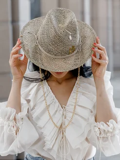 Шляпа женская летняя на пляж из водорослей с цепочкой