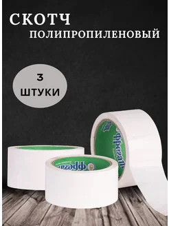 3 шт Клейкая лента полипр 48мм х 50м 45мкм белая скотч