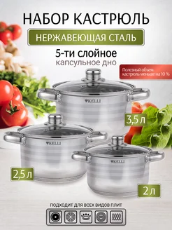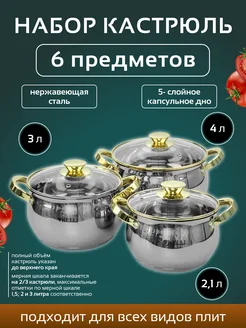 Набор кастрюль из нержавеющей стали с крышками, 3 шт