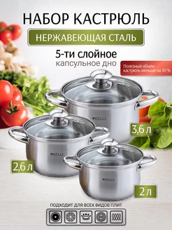 Набор кастрюль из нержавеющей стали с крышками 3 шт