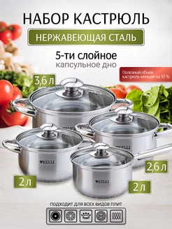 Набор кастрюль из нержавеющей стали с крышками, 4 шт