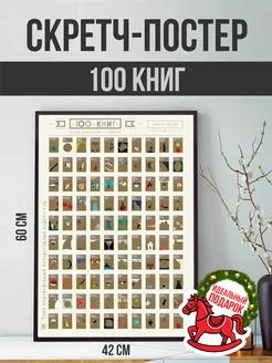 Скретч постер плакат на стену 100 книг подарочный тубус